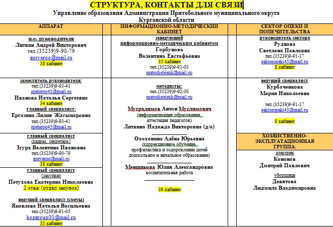 Структура Управления образования Притобольного МО